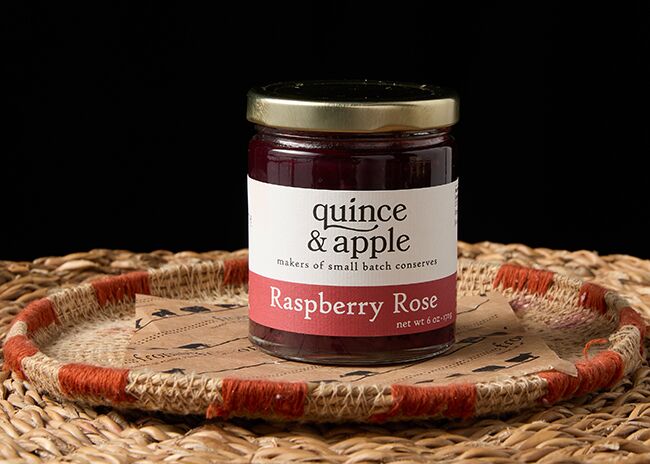 Quince & Apple was started by a local husband and wife team who produced fine preserves and syrups. Raspberry Rose Conserve is made at Quince & Apple, along with many other favorites sold in our shop! Today, the Quince & Apple team handcrafts conserves and syrups without the usual amount of sugar that you usually find in such products.