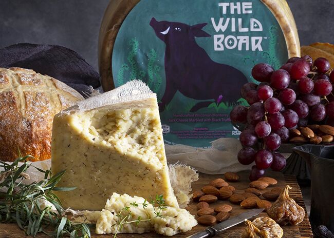 Earthy black truffle ambles between creamy Monterey Jack curds to craft the rich yet approachable sensory experience of The Wild Boar. Each bite transports your palate to the Wisconsin North with the savory truffles’ warm, woodsy notes and mild, buttery cheese. This charming and aromatic Jack quickly finds its home on a board or melted into dishes for a delightfully mushroomy finish.